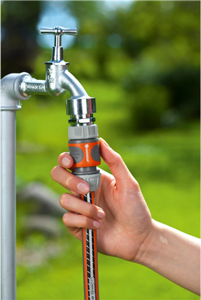 An important part of the Original GARDENA System, the Hose Connector allows fast and comfortable connection of the hose outlet. The garden hose can be easily connected to the tap and by a simple pull, the connection can be released.